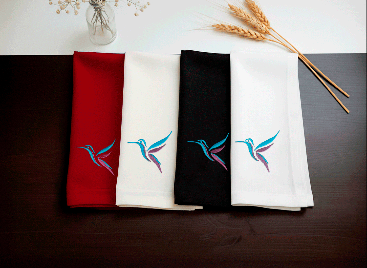 Cada servilleta está bordada con precisión sobre lino algodón premium, un tejido suave y resistente que realza los matices del diseño con elegancia natural.