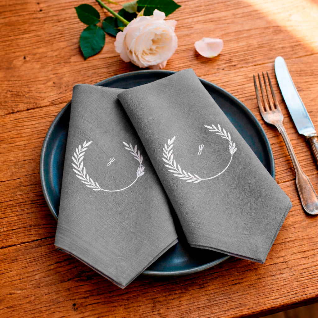 Celebra los momentos que perduran. Nuestra docena de servilletas bordadas está diseñada para convertirse en un recuerdo único de ese día irrepetible.