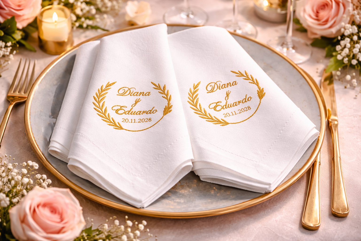 Docena de Servilletas Personalizables para Boda – León García