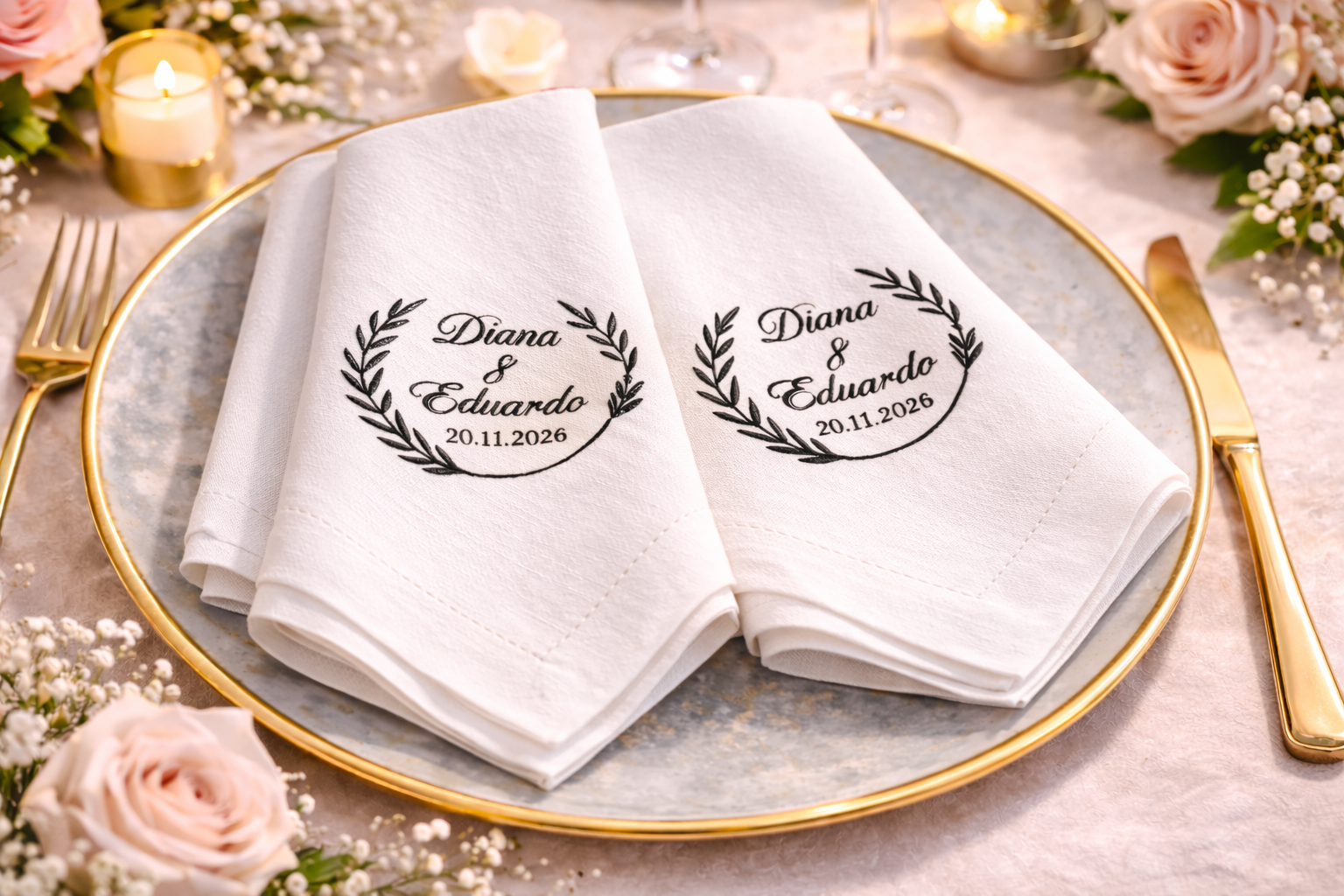 Docena de Servilletas Personalizables para Boda – León García