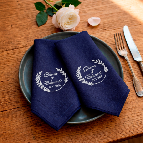 Celebra los momentos que perduran. Nuestras servilletas bordadas están diseñadas para convertirse en un recuerdo único de ese día irrepetible.